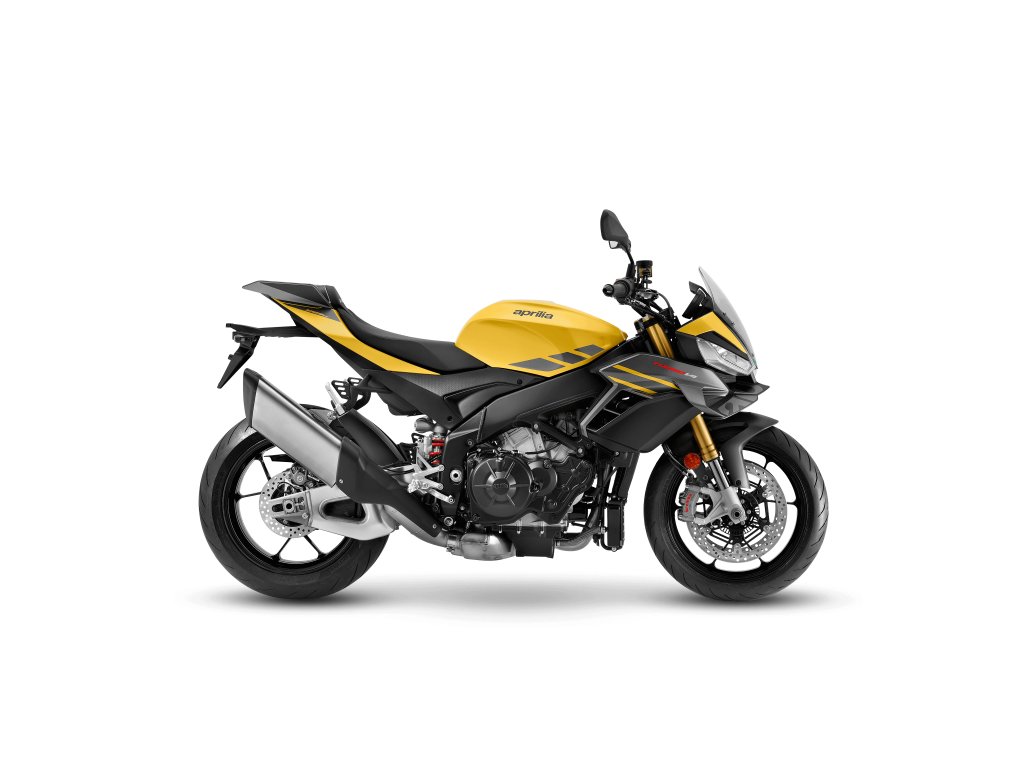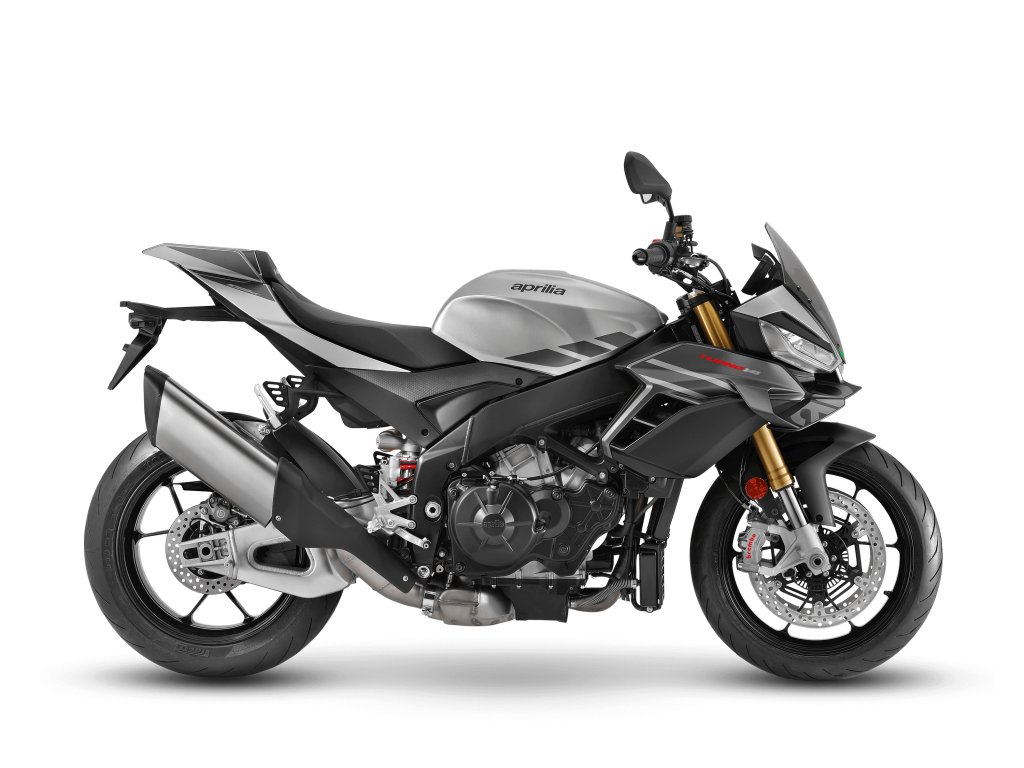 Aprilia Tuono V4 kombinuje sportovní výkon s výjimečnou ovladatelností i na běžné silnici. Díky motoru V4 E5+ o výkonu 180 koní, sebevědomé ergonomii, integrovaným křídlům pro lepší stabilitu a přizpůsobitelnému balíčku elektroniky a-PRC je všestrannější a dravější než kdykoli předtím.
