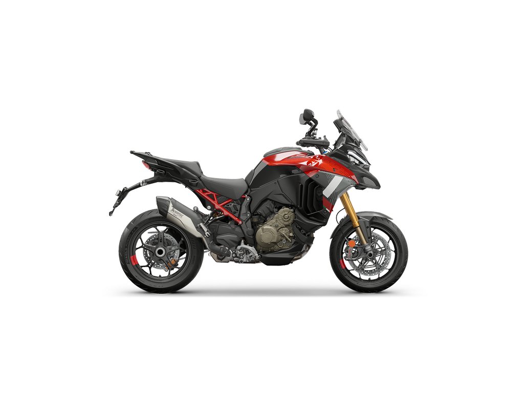 | Výbava | jízdní režimy, ABS Bosch s funkcí brždění v náklonu, Ducati kontrola trakce (DTC), Ducati Wheelie kontrola (DWC),asistent rozjezdů (VHC), adaptivní tempomat, senzor mrtvého úhlu, bezklíčové ovládání Hands-Free, podsvícené přepínače na řídítkách, automatická deaktivace směrových světel, rychlořazení up/down (DQS), Full LED osvětlení s funkcí přisvícení do zatáčky, karbonový přední blatník, homologovaná koncovka výfuku Akrapovic |