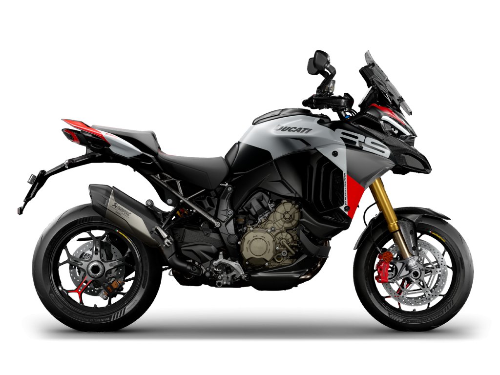 | Výbava | jízdní režimy, ABS Bosch s funkcí brždění v náklonu, Ducati kontrola trakce (DTC), Ducati Wheelie kontrola (DWC),asistent rozjezdů (VHC), Ducati Brake Light (DBL), Ducati vehicle observer (DVO), Engine brake control (EBC), Full-map navigační systém, USB port, adaptivní tempomat, senzor mrtvého úhlu, bezklíčové ovládání Hands-Free, podsvícené přepínače na řídítkách, automatická deaktivace směrových světel, rychlořazení up/down (DQS) 2.0, Full LED osvětlení s funkcí přisvícení do zatáčky, karbonový přední blatník, karbonové kryty rukojetí, homologovaná titanová koncovka výfuku Akrapovič, |