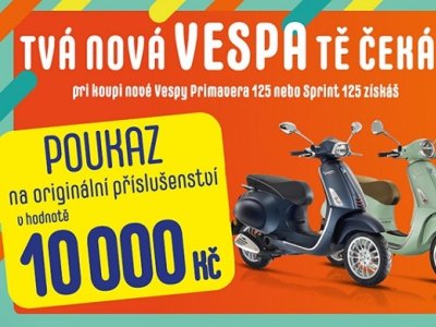 Kupte jakýkoli ze skladových skútrů Vespa Primavera nebo Vespa Sprint s motorem objemu 125 ccm a získáte poukaz na originální příslušenství Vespa v hodnotě 10 000 Kč. Poukaz můžete použít na nákup originálního příslušenství skútru, vybavení řidiče a oblečení…