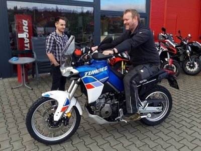 Ve středu 9. února jsme vybalili a oživili novinku Aprilii Tuareg 660 ve variantě Evocative, tzn. s barevným schématem Indaco Tagelmust. Podle nás fakt pěkná motorka. Líbí se nám ta použitá minimalistická kombinace barev, která znatelně odkazuje na Tuareg 600 Wind z devadesátek. Jako první dorazil od import…